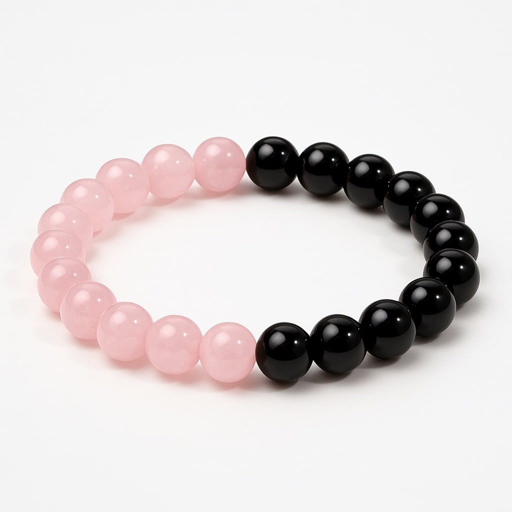 Rose Quartz With Black Obsidian Bracelet 8MM – Balance Love & Protection in One